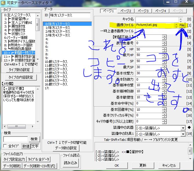 (例えば可変DBの主人公ステータスのヒーローさんの顔画像を変えたい場合はそれを選択します)