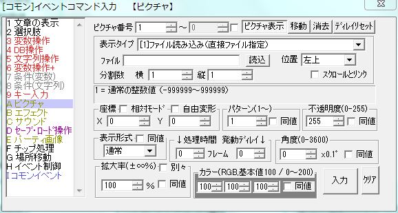 イベントコマンドのピクチャの項目で、